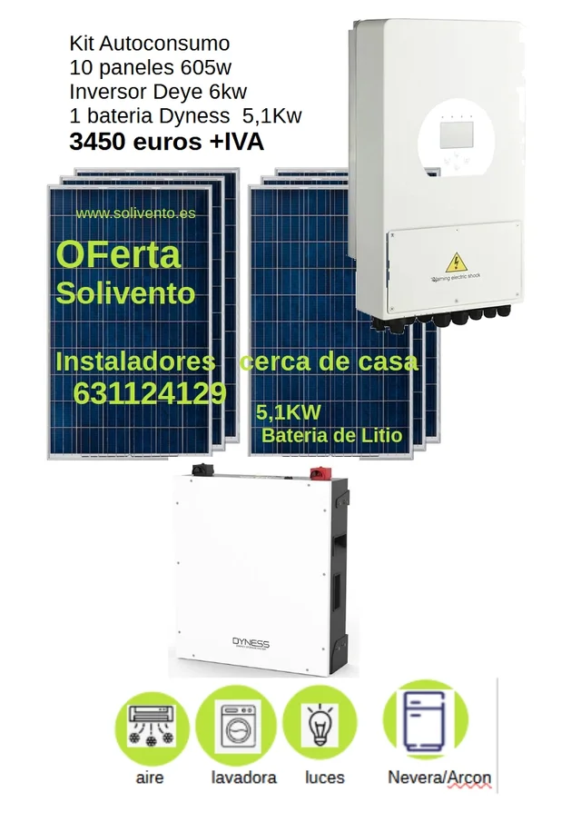 Kit autoconsumo de 4kw y bateria Litio de 5,1kw